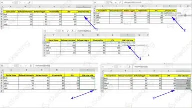 Rumus penjumlahan excel ke bawah antar sel. Cara menjumlahkan antar sheet di excel; Cara menjumlahkan jam di excel; Bagaimana cara untuk melakukan pengolahaan data dengan penjumlahan di microsoft excel untuk data baris maupun kolom. Perhatikan tabel data berikut :